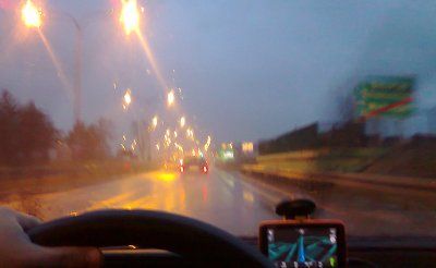 Po odczekaniu kilkudziesięciu minut w korkach dojechałem wreszcie do obwodnicy i wtedy zaczęła się właściwa zabawa. Jak wiadomo prędkość na autostradach i drogach ekspresowych została od nowego roku zwiększona, zatem ryzykowne było już samo wjechanie na obwodnicę. Przy szybkości 60km/h pokonuje się około 100 metrów podczas sześciu sekund. Jeśłi tyle samo wynosi widoczność, to sześć sekund może być wystarczającym czasem na zauważenie przeszkody, i ostre hamowanie. Przy prędkości 100km/h od zauważenia przeszkody do uderzenia w nią mija tylko tyle czasu ile trzeba na słynny okrzyk religijny pilotów lądujących w Smoleńsku. O hamowaniu już można zapomnieć. Niestety, aby dostosować się do ruchu i nie powodować dodatkowego zagrożenia musiałem dostosować swą prędkość do innych. Na prawym wolniejszym pasie to i tak było ponad 80km/h. Na szczęście tym razem, żadna z kostek tego domina się nie przewróciła.