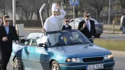 Niedawno Polskę obiegła wiadomość i film z gimnazjalistami, którzy parodiują przejazd papieża przez miasto. Nie konkretnego papieża, ale papieża w ogóle, bowiem wygłup może równie dobrze przypominać przejazd Jana Pawła II, Benedykta XVI lub któregoś z wcześniejszych papieży. Jedzie kabriolet, w nim stoi postać ubrana jak papież, a obok na czarno ubrani osobnicy udający ochroniarzy.