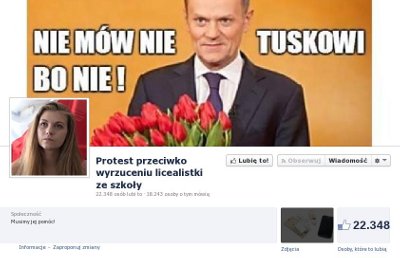 Trzeba bronić Marysi Sokołowskiej przed złym Tuskiem z wilczymi oczami. Tylko powszechny protest na Facebooku może uratować bohaterską licealistkę.