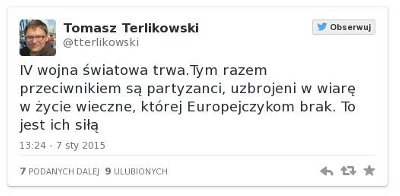 Mord dokonany na pracownikach francuskiego pisma satyrycznego „Charlie Hebdo” spowodował dość dziwne reakcje wśród polskiej prawicy. Z jednej strony przeważają obawy przed agresją fanatyków religijnych spod znaku półksiężyca, z drugiej jednak można odczytać skrywaną satysfakcję, że wreszcie ktoś uciszył tych przebrzydłych „ateuszy”.