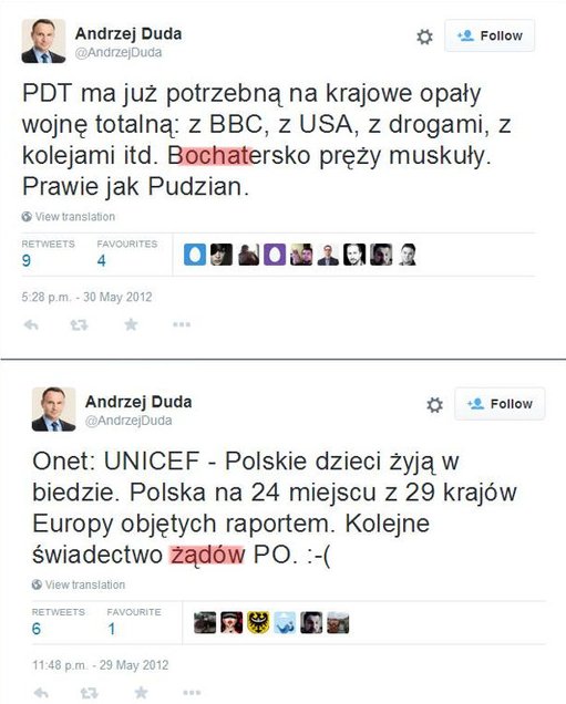 Szybko się jednak okazało, że Komorowski łączący się „w bulu i nadzieji” to nic w porównaniu do Dudy, który swe błędy rozpowszechniał od lat na Twitterze.