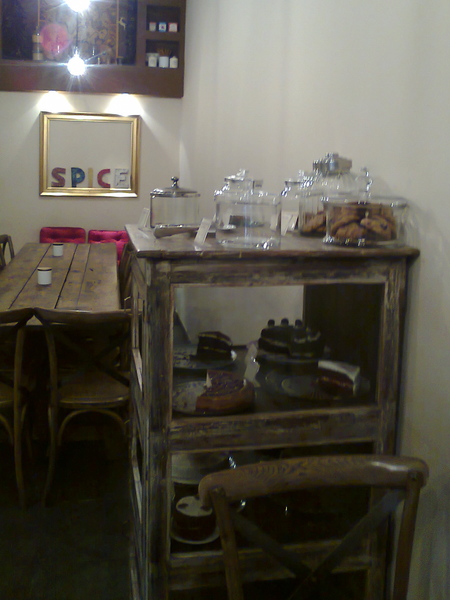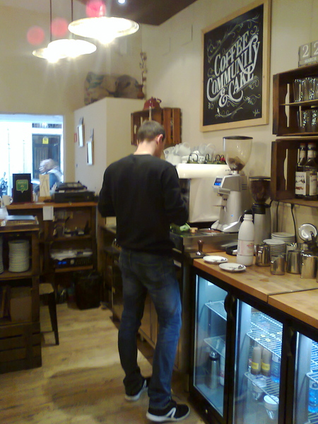 W przeszklonej szafce znajdziecie stosunkowo niedrogie i zawsze świeże wypieki domowe. To drugi z założycieli i współwłaścicieli kafejki – Katalończyk Isi – jest wykonawcą tych bardzo smacznych ciast i ciasteczek. Nie sposób się tylko przyglądać, zaręczam wam, że nie wystarczy zobaczyć, trzeba spróbować. A warto, jeśli będziecie w Barcelonie.
