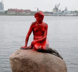 Nieznani sprawcy przemalowali kopenhaską syrenkę na czerwono. Nie jest to pierwszy akt wandalizmu, który spotkał stojący od 1913 roku, na wybrzeżu, nieopodal miejsca, gdzie kiedyś przypływały promy z Polski, niewielki pomnik, który postawiono nieistniejącej literackiej postaci z baśni Andersena.